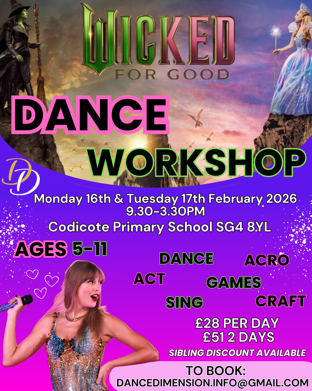 Each camp follows an exciting theme — children will learn a dance routine, a song, and take part in engaging drama activities. During arts & crafts, they’ll design and create props inspired by the day’s theme, ready to bring the performance to life!